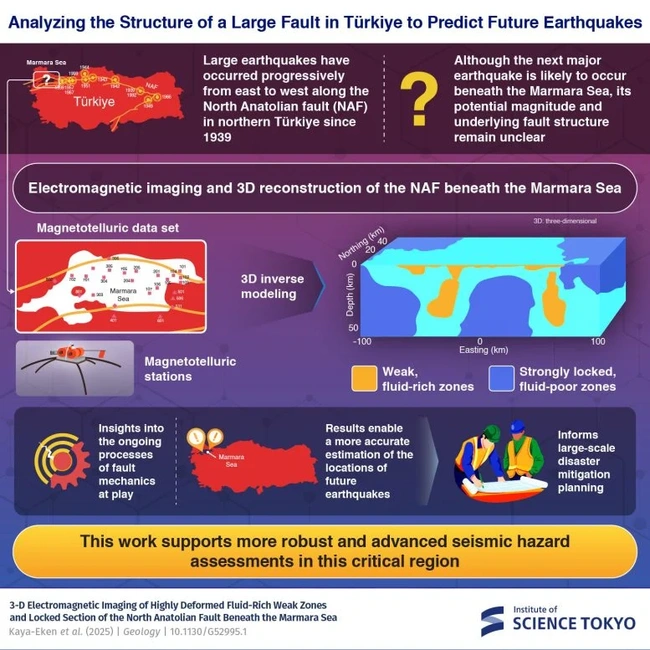 Η ομάδα των ερευνητών, με επικεφαλής τον καθηγητή Γιασούο Ογκάουα και τη δρα Τουλάι Καγιά-Εκέν, δεν έμεινε στις κλασικές μεθόδους. Χρησιμοποίησαν μια προηγμένη τεχνική (ηλεκτρομαγνητική απεικόνιση) για να «σκανάρουν» το υπέδαφος κάτω από τη Θάλασσα του Μαρμαρά. Φανταστείτε το σαν μια αξονική τομογραφία της Γης.
