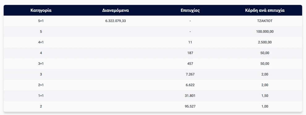 Πραγματοποιήθηκε το βράδυ της Τετάρτης, παραμονή Χριστουγέννων (24/12), η κλήρωση του Τζόκερ (αριθμός 3006). Το ποσό που κυνηγούσαν οι παίκτες στην πρώτη κατηγορία δεν ήταν καθόλου ευκαταφρόνητο, καθώς έφτανε τουλάχιστον τα 6.300.000 ευρώ.