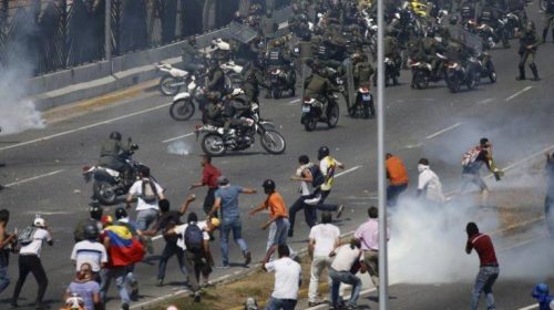 Οι εικόνες που μεταδίδουν τοπικά δίκτυα καταγράφουν εκτεταμένες συγκρούσεις στους δρόμους του Καράκας. Σύμφωνα με το Reuters, πριν από λίγο όχημα της Εθνοφρουράς της Βενεζουέλας έπεσε πάνω σε διαδηλωτές που πετούσαν πέτρες και το χτυπούσαν με ρόπαλα.