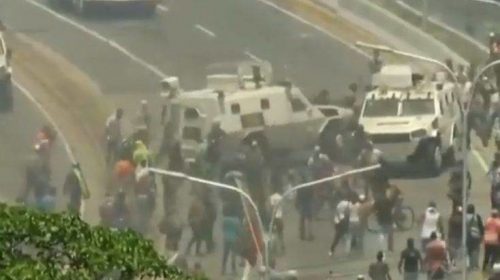 Σοκαριστικές είναι οι εικόνες που μετέδωσαν τοπικά δίκτυα της Βενεζουέλας από τη στιγμή που ένα τεθωρακισμένο όχημα της Εθνοφρουράς της Βενεζουέλας έπεσε πάνω σε διαδηλωτές στο Καράκας, όπου η κατάσταση είναι έκρυθμη τις τελευταίες ώρες, μετά το κάλεσμα του αυτοανακηρυχθέντος προέδρου Χουάν Γκουαϊδό στους υποστηρικτές τους να ξεσηκωθούν κατά του καθεστώτος Μαδούρο.