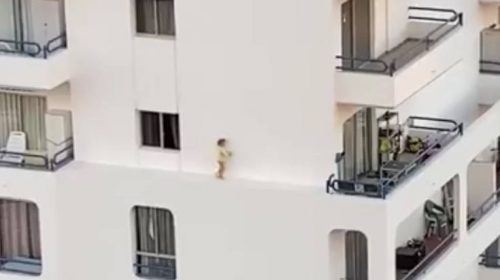 Το κοριτσάκι όπως βλέπετε στο βίντεο που ανέβηκε αρχικά στη σελίδα «I love Tenerife» περπατάει γρήγορα στο περβάζι ενώ στηρίζεται στον τοίχο με το ένα της χέρι. Κάποια στιγμή, φαίνεται να χάνει την ισορροπία της και επιταχύνει για να φτάσει σε μπαλκόνι.