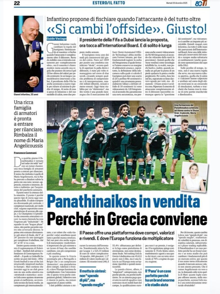 Ο αρθρογράφος Francesco Caremani δεν μασάει τα λόγια του. Ξεκινάει το κείμενο αναφέροντας πως «μια πλούσια οικογένεια εφοπλιστών είναι έτοιμη να μπει για να αναγεννήσει την ομάδα» και ρίχνει το όνομα στο τραπέζι: Μαρία Αγγελικούση.