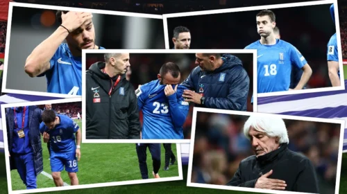 Κοίτα τα παιδιά… τα δικά μας παιδιά της Εθνικής. Καταρρακωμένα. Ο ένας κλαίει με λυγμούς στην αγκαλιά του τιμ, δεν μπορεί να το χωνέψει. Ο άλλος πιάνει το κεφάλι του, λες και θέλει να γυρίσει τον χρόνο πίσω. Ο πιτσιρικάς με το 16 σκυμμένος, λες και κουβαλάει όλο το βάρος του κόσμου. Ακόμα κι ο γερόλυκος, ο προπονητής μας, με το χέρι στην καρδιά, μοιάζει να ‘χει ραγίσει.
