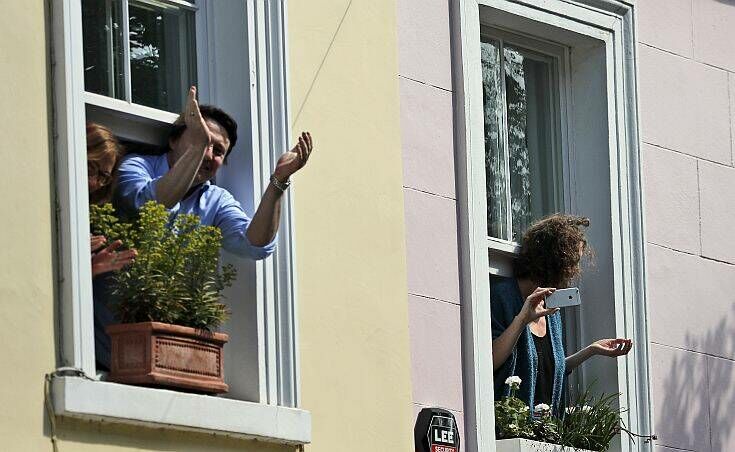 Από τα παράθυρά τους ή στον δρόμο, οι κάτοικοι τον χειροκροτούν διαρκώς.
