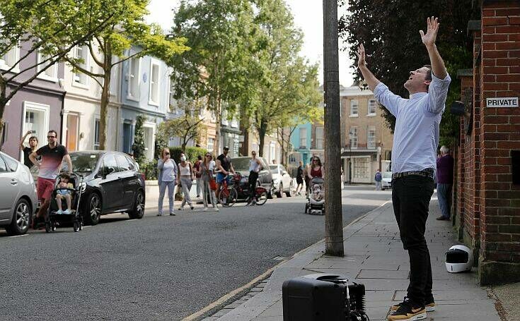 Αυτήν την Κυριακή, ο Άλερτον πάρκαρε το ποδήλατό του στην οδό Πορτομπέλο, στη γνωστή λονδρέζικη συνοικία του Νότινγκ Χιλ, όχι πολύ μακριά από τον ναό όπου λειτουργεί συνήθως και ο οποίος παρέμεινε κλειστός από τις 23 Μαρτίου, όταν επιβλήθηκαν τα μέτρα περιορισμού της κυκλοφορίας.
