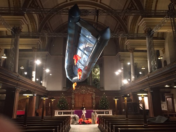 Το συγκινητικό είναι οτι οι κληρικοί του ναού αλλά και οι πιστοί θα προσευχηθούν στις λειτουργίες των Χριστουγέννων παρούσης αυτής της βάρκας και θα ψάλουν χριστουγεννιάτικους ύμνους για τους πρόσφυγες.