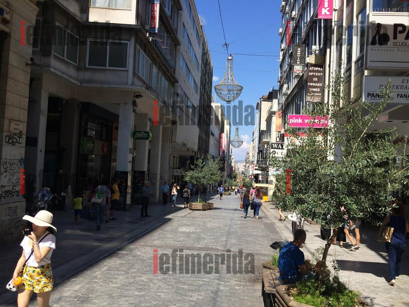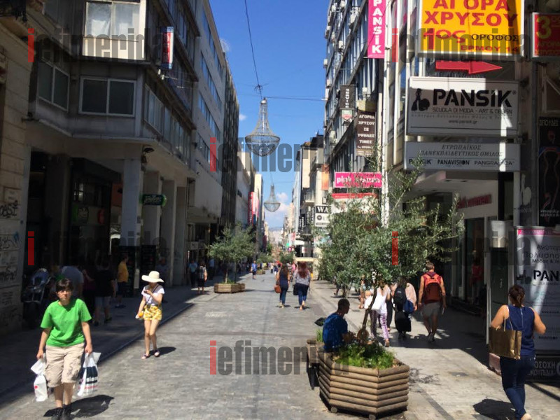 Η αγορά από το πρωί έχει παγώσει εντελώς, εκτός από τα σούπερ μάρκετ όπου επικρατεί το αδιαχώρητο για μια ακόμη ημέρα. Χαρακτηριστική είναι η εικόνα της άδειας Ερμού όπου εκτός από τους ελάχιστους τουρίστες δεν κυκλοφορεί κανένας άλλος.