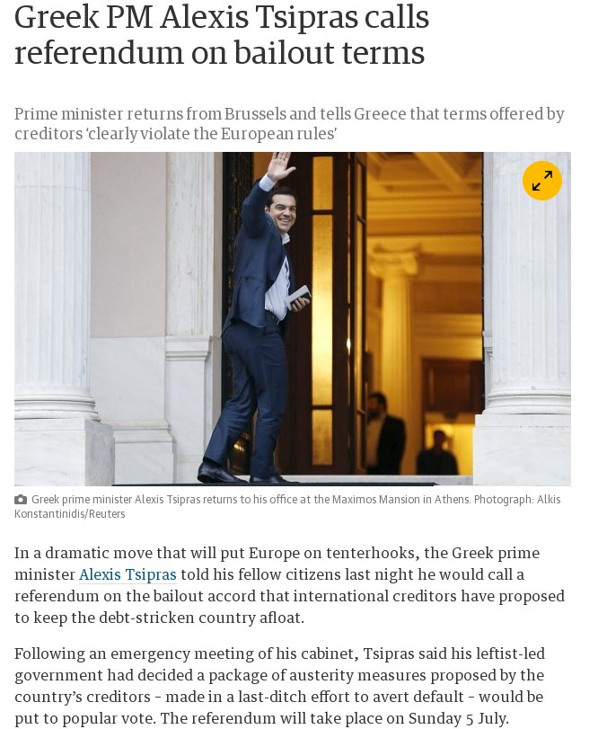 Ο Guardian χαρακτηρίζει την κίνηση Τσίπρα για δημοψήφισμα ως δραματική και ότι αυτή θα προκαλέσει ανησυχία στην Ευρώπη.