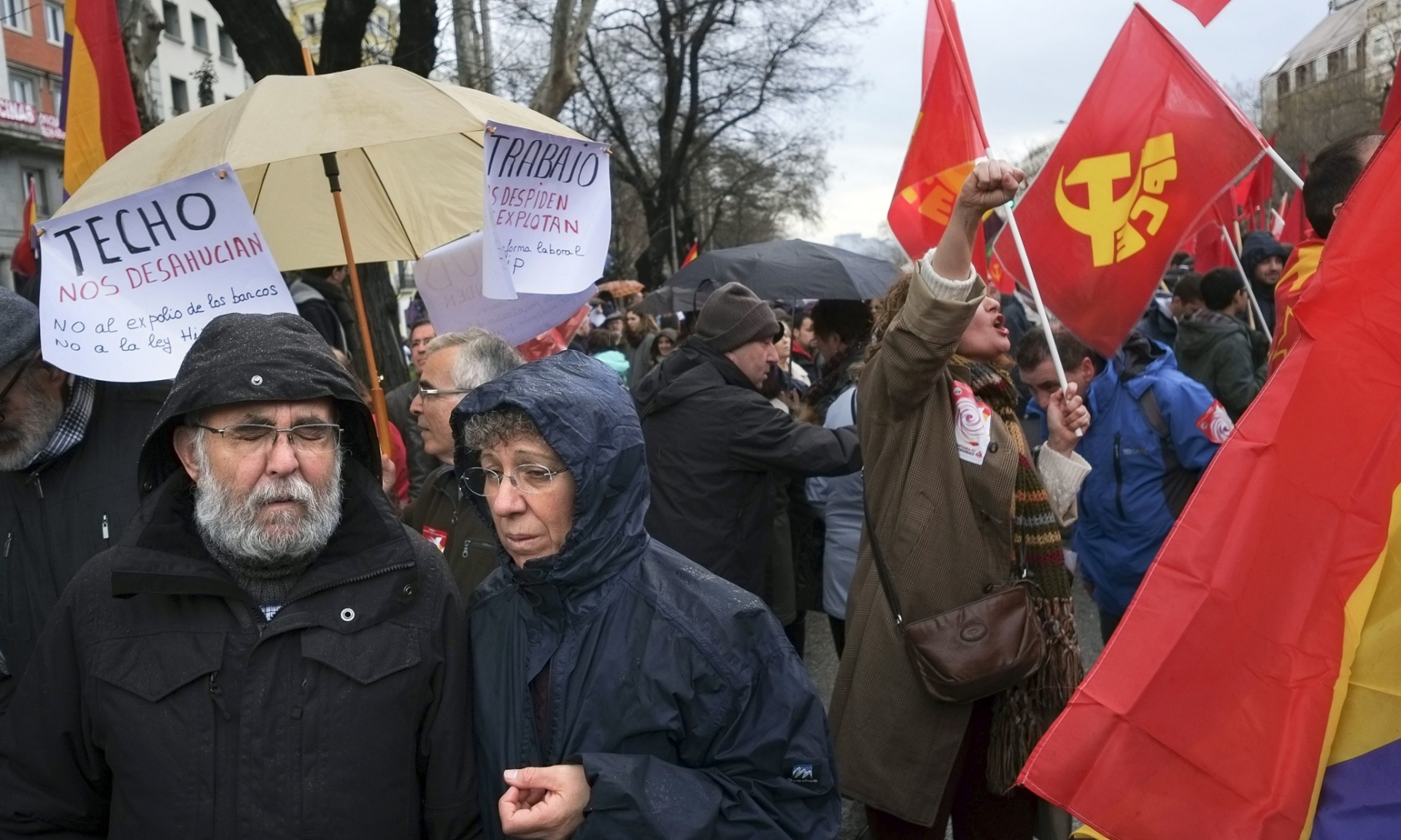 Πολλοί έφθασαν στη Μαδρίτη με τα πόδια έπειτα από πορεία πολλών ημερών, άλλοι με λεωφορεία από άλλες περιοχές της Ισπανίας. Κρατούσαν τις κόκκινες-κίτρινες-μοβ σημαίες των Δημοκρατικών στον ισπανικό εμφύλιο πόλεμο, της Ανδαλουσίας, των συνδικάτων, των κομμάτων της αριστεράς, της Χιλής με μία εικόνα του Τσε Γκεβάρα.