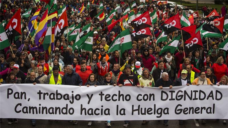 «Ψωμί, δουλειά, στέγη και αξιοπρέπεια», έγραφε το πανό που βρισκόταν στην «κεφαλή» μίας εκ των πορειών. Οι διαδηλωτές κατήγγειλαν τα αποτελέσματα της πολιτικής της λιτότητας που έφερε περικοπές στους τομείς της εκπαίδευσης, της δημόσιας υγείας και τα κοινωνικά επιδόματα, κατευθύνθηκαν από διάφορες περιοχές της πρωτεύουσας στην πλατεία ντε Κολόν στο κέντρο της πόλης.