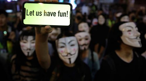 Κάποιοι φορούσαν μάσκες Γκάι Φωκς και άλλοι ήταν ντυμένοι κλόουν. Κάποιος άλλος ήταν ντυμένος στα κόκκινα, σε μια προφανή αναφορά στον πρωταγωνιστικό χαρακτήρα της ταινίας Joker. «Σταματήστε να μπλοκάρετε τον δρόμο. Άντε γ…τε», φώναζαν στους αστυνομικούς. «Θέλουμε να πιούμε. Δεν μπορείτε να αφήσετε τον κόσμο μια φορά να διασκεδάσει;». Ένας 43χρονος, ονόματι Γκόρντον, που πήγε στην περιοχή για να διασκεδάσει, δήλωσε: «Ελπίζω σήμερα να μην υπάρξει αστυνομία, να μην γίνουν συγκρούσεις. Όλοι είναι χαρούμενοι» και ενώ απομακρυνόταν φώναζε: «Ελευθερώστε το Χονγκ Κονγκ».