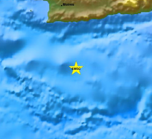 Το επίκεντρο της δόνησης εντοπίζεται σε θαλάσσιο χώρο 38 χιλιόμετρα ΝΑ του Τυμπακίου.