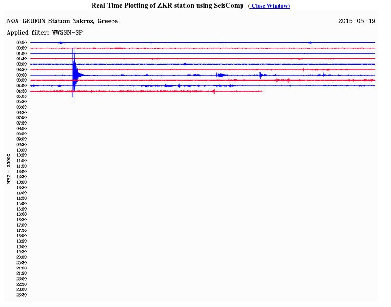 H δόνηση όπως καταφράφηκε από τον σεισμογράφο που είναι τοποθετημένος στη Ζάκρο