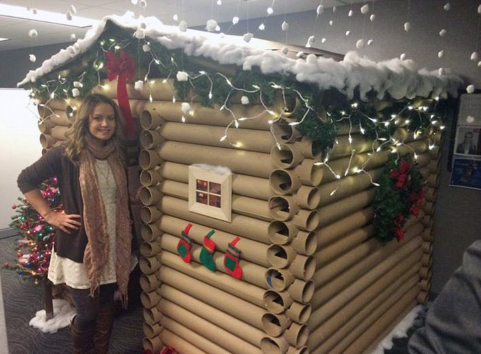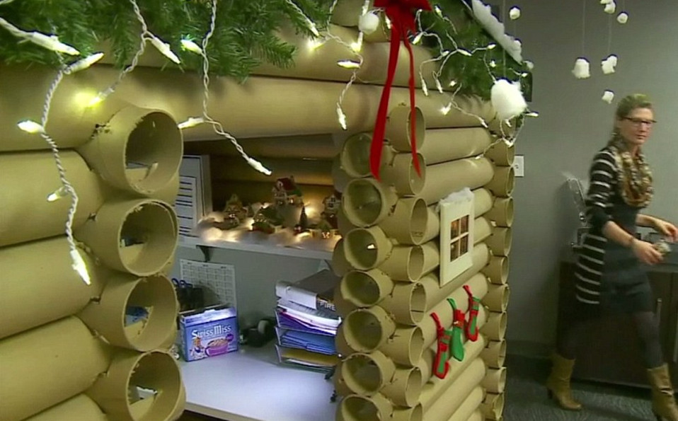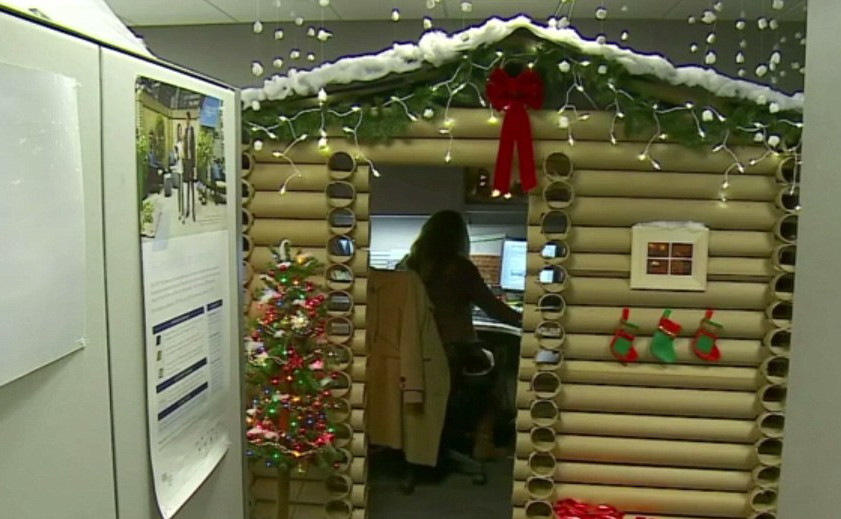 Εκεί η ευφάνταστη υπάλληλος διακόσμησε την καλύβα με ψεύτικο χιόνι, γιρλάντες και λαμπιόνια και περίμενε τις αντιδράσεις των συναδέλφων της οι οποίοι έμειναν άφωνοι βλέποντας το τελικό αποτέλεσμα.
