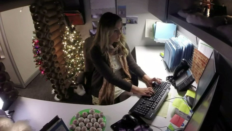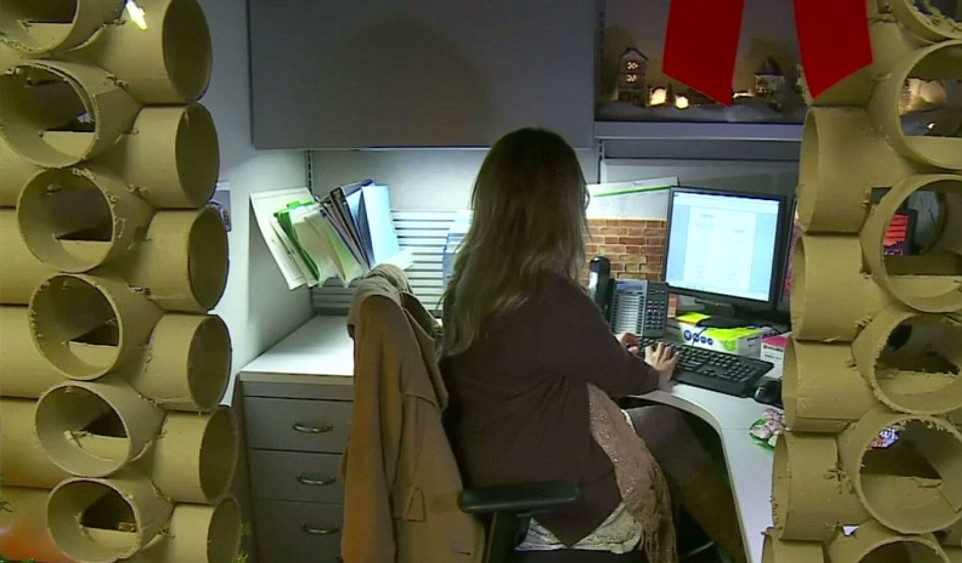Η Αντζελα Γουέστφιντ, πωλήτρια στο ξενοδοχείο W Μινεάπολη της Μινεσότα, μετέτρεψε το γραφείο της σε χριστουγεννιάτικη καλύβα θέλοντας να δώσει γιορτινό τόνο στο χώρο εργασίας της.