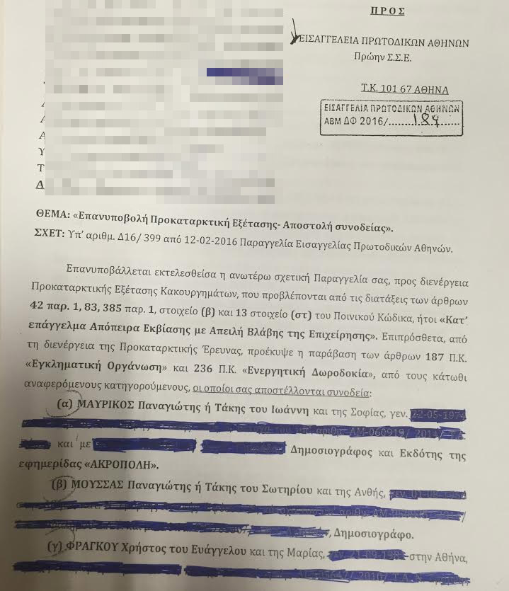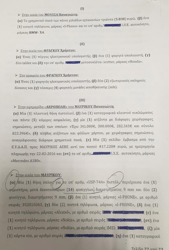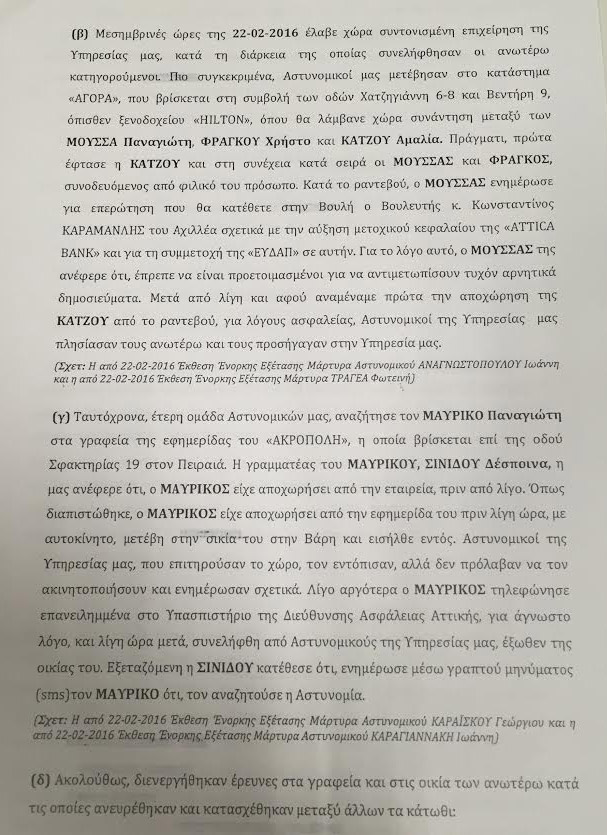 Διαβάστε αναλυτικά τη δικογραφία που σχηματίστηκε εις βάρος των Παναγιώτη Μαυρίκου, Τάκη Μουσσά και Χρήστου Φράγκου.